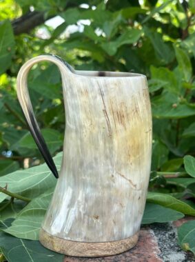 “Authentic Viking Horn Mug crafted from natural horn, perfect for adding a rustic and warrior-style touch to your drinkware. Durable, unique, and ideal for mead, beer, or display.”